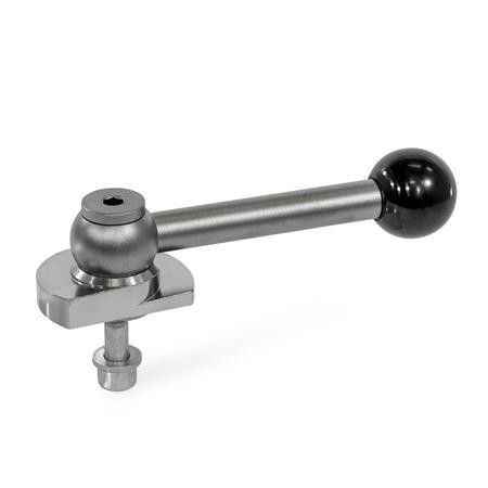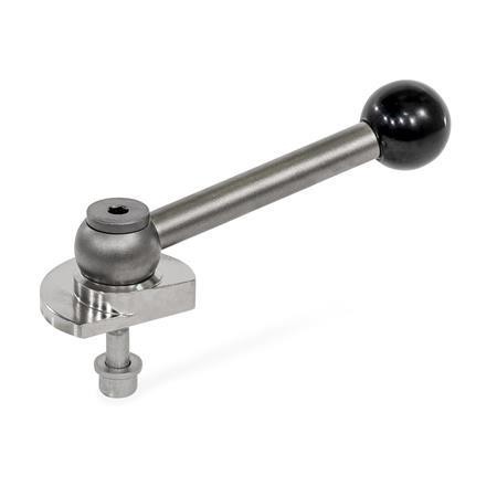 The ball levers of types KVB / GVB form a positive connection with the eccentric cam by means of a serration. During assembly, the lever can thus be fixed in a position favourable for clamping or, in the relaxed position, rotated out of the clamping range.