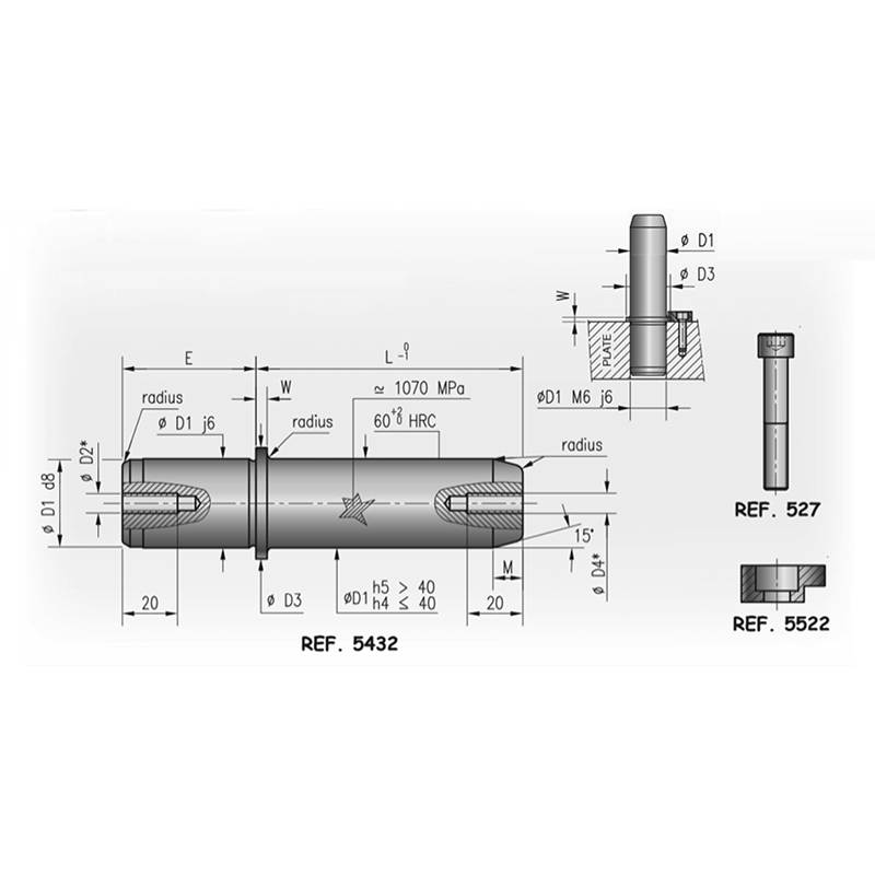 5432's guide pillars are sold as assemblies (including clamps 5522 and cap screws)