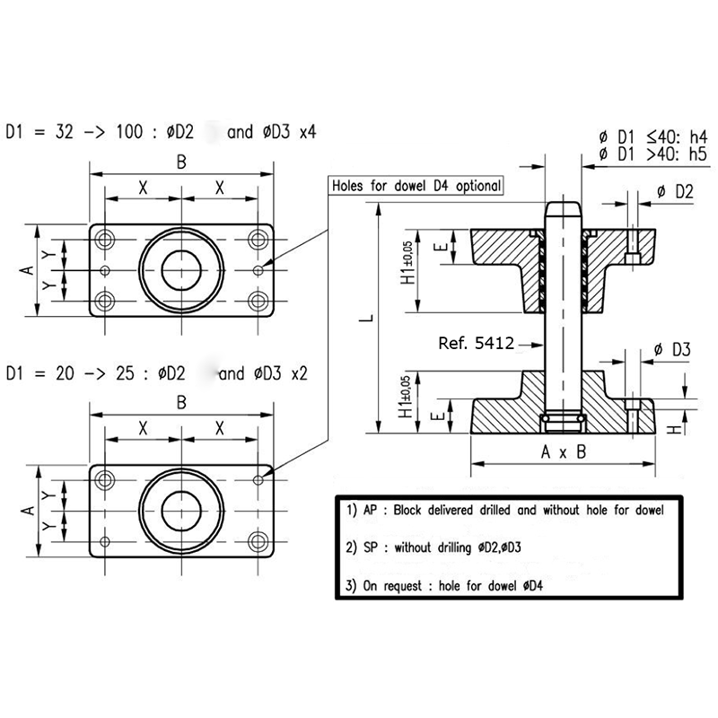 Type APD - Block drilled, with dowel hole ØD4 (on request)