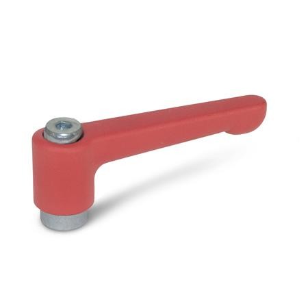 These levers are ideal whenever parts have to be clamped in a confined space or in a particular lever position. The centre insert is connected to the lever via serrations which can easily be disengaged.