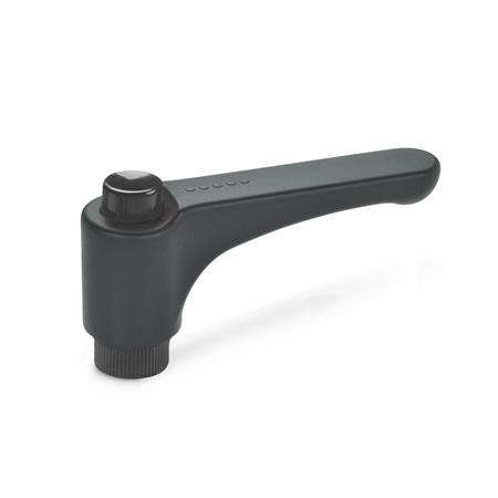GN600 Flat Adjustable Hand Lever with Releasing Button, Plastic, Threaded Brass Bush