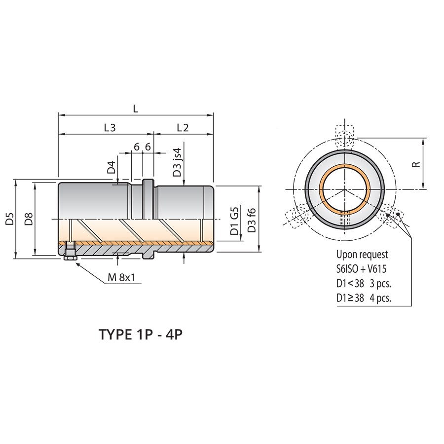- Material - 1.1731 steel, C45-bronze, inner diameter bronze insert, honed; D3 fine ground / inner diameter bronze coated; D3 fine ground.
