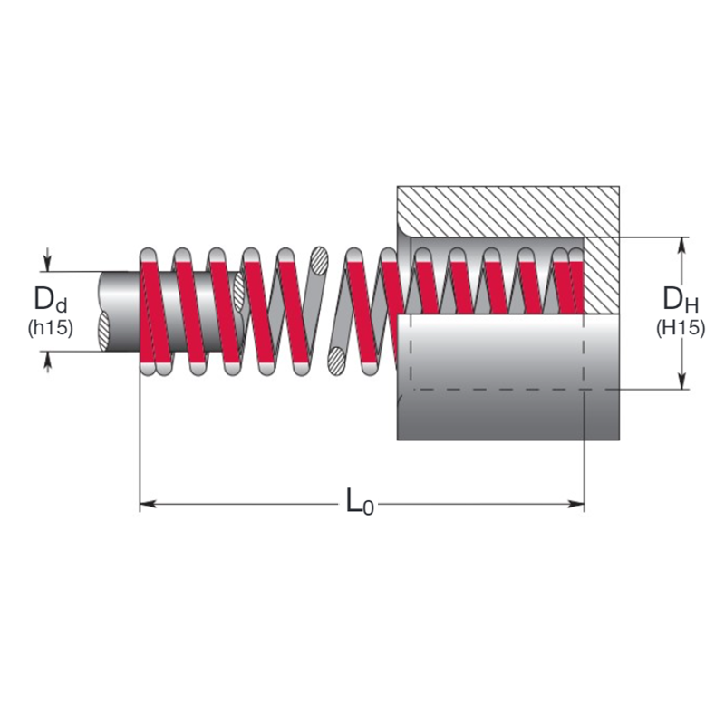 Die spring, for medium loads. Oval wire high force compression spring, manufactured to USA standards and RoHS compliant, and now with updated sizes to be fully interchangeable with market standards.