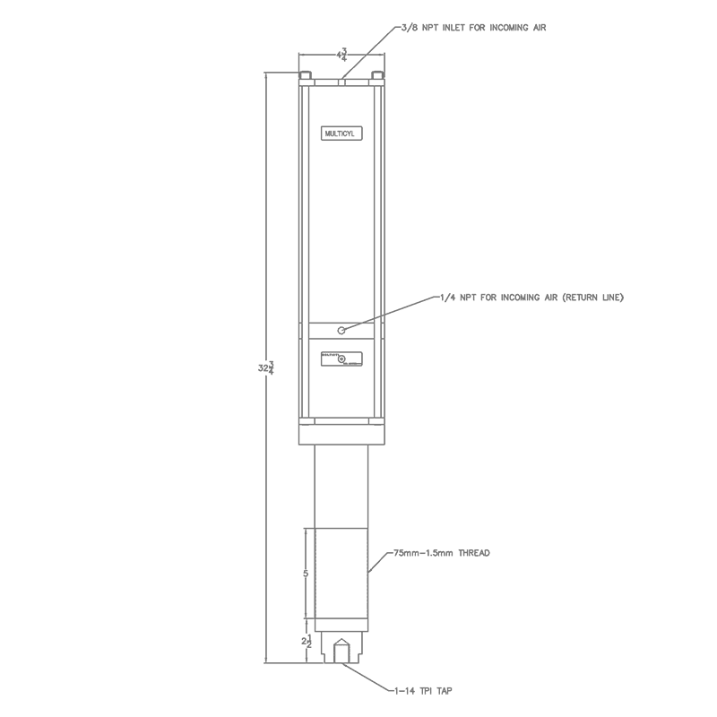 All Multicyls can be operated from a horizontal position, although be sure that the oil filler screw is facing upwards; this will properly align the bleed holes of the cylinder allowing the oil transfer system to work correctly and the cylinder to function as it should. Standard Multicyls will not operate in an inverted (upside down) position, however, custom modifications may be made to overcome this problem and provide an inverted cylinder. This must be requested at the time of ordering, please contact us for more information.