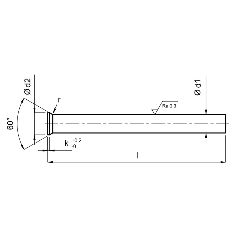 These preforming ejector pins, EP-D-HSS, are made from top quality, fully hardened & tempered (shaft & head equal hardness) being a cost effective choice. They are ideal for bolt manufacture.
