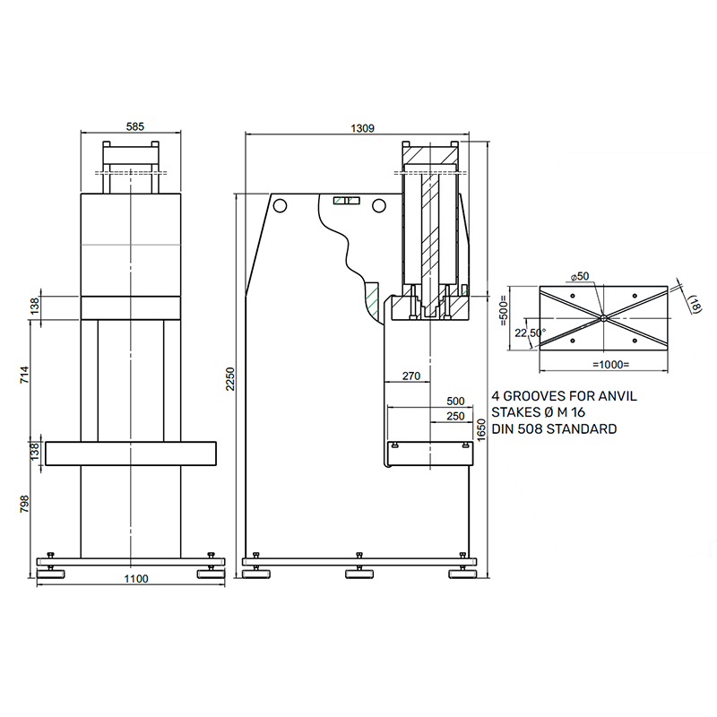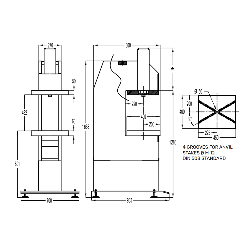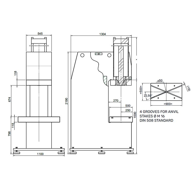 V2 -Machine with two hand controls, protection of side and top tables, distributor check value and pneunatcic fittings, Regulation and lubrication filter.