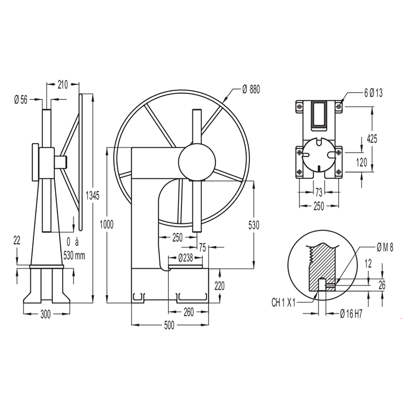 Strong, reliable and safe, these mechanical benchtop presses provide linear power over the entire travel duration to the applied load on the capstan. The ergonomic design, easily powered by hand, makes this industrial rack press ideal for a range of machine tasks including punching, pressing, stamping, assembly, connections,small forms andvarious crimping operations.