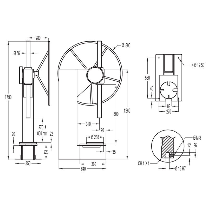 - Cast iron or mechanically welded frame ensuring robustness and rigidity.