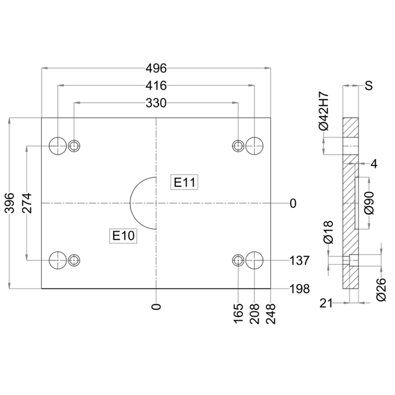 E10-346-496- Clamping Plate, Lateral Overhanging, with Locating Ring Recess