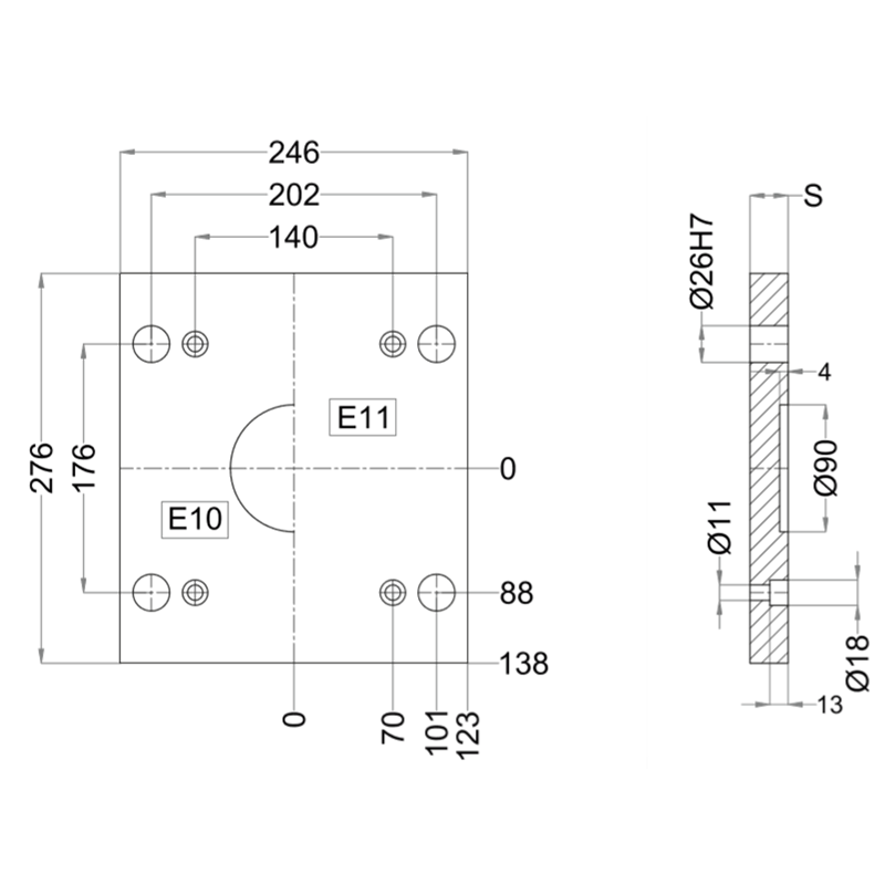 E11-218-246 - Clamping Mounting Plate, Lateral Overhanging