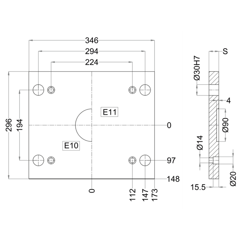 E11-246-346 - Clamping Mounting Plate, Lateral Overhanging