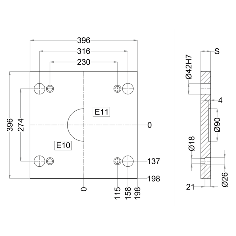 E11-346-396 - Clamping Mounting Plate, Lateral Overhanging