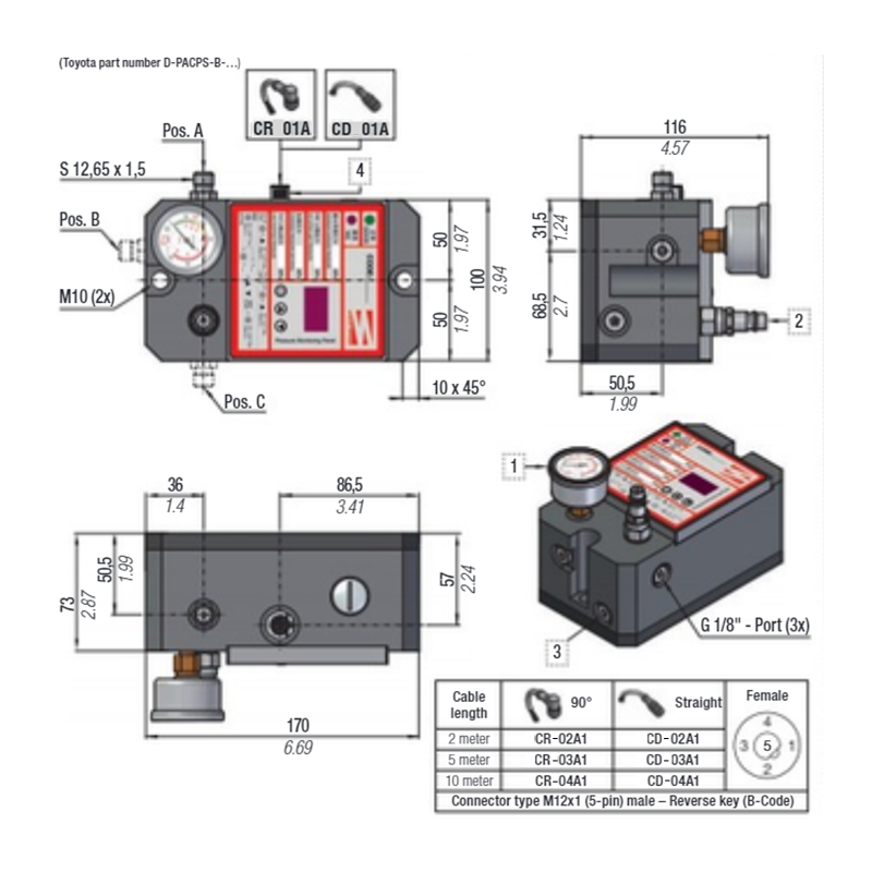 2. Pressure Gauge 0-600 Bar 5. Eliectrical Connector