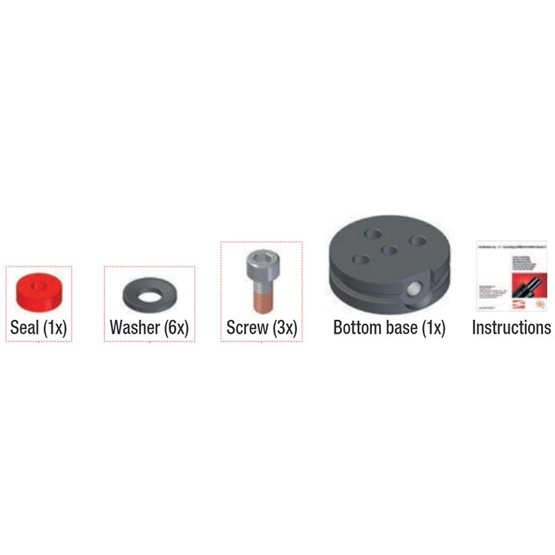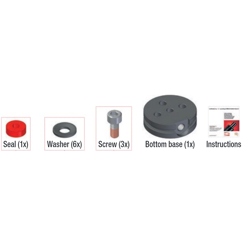 Service Kit F for Gas Springs, includes seal, washers, screws,bottom plate and instructions.