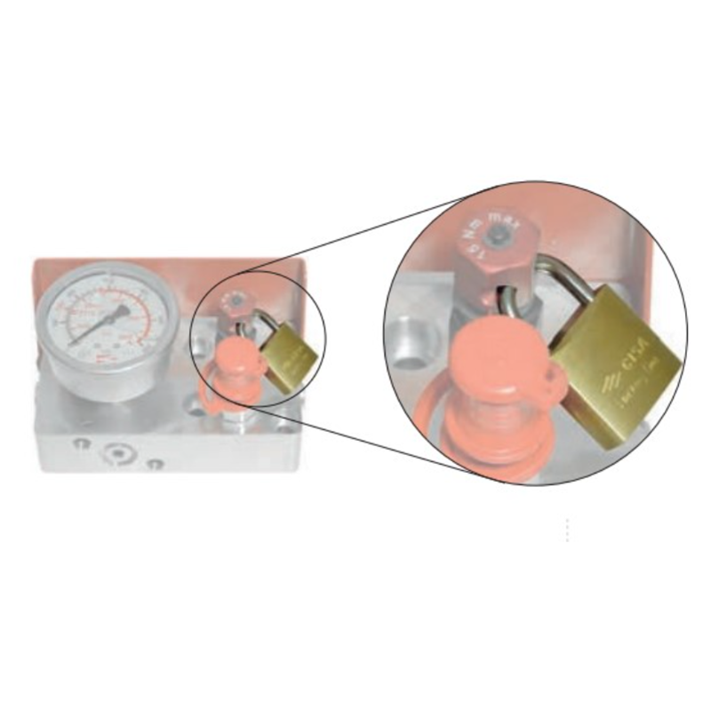 Padlock UT, for Discharging Valve is used prevent unauthorized charging during maintanence. This allows for safer maintanence.