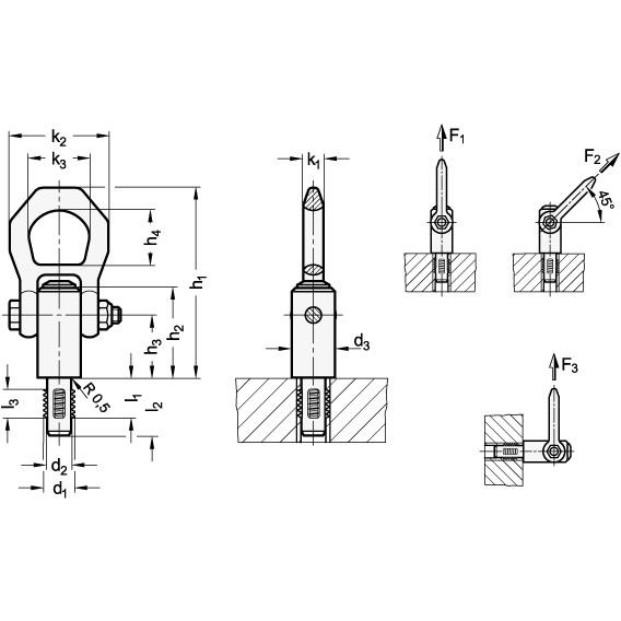 For further application guidelines, see the operating instructions enclosed with every threaded lifting pin