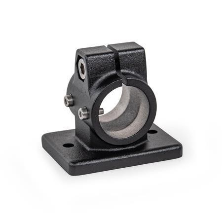 Flanged linear actuator connectors GN 146.13 are based on flanged connector clamps. The additionally provided mounting holes are used to connect to the drive key of a linear actuator. Bores with the designation G have sleeve bearings.