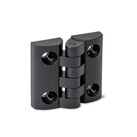 These hinges, GN 151, are strong and robust, and are made from heat resistant plastic. A cost effective choice, with various fixing options.