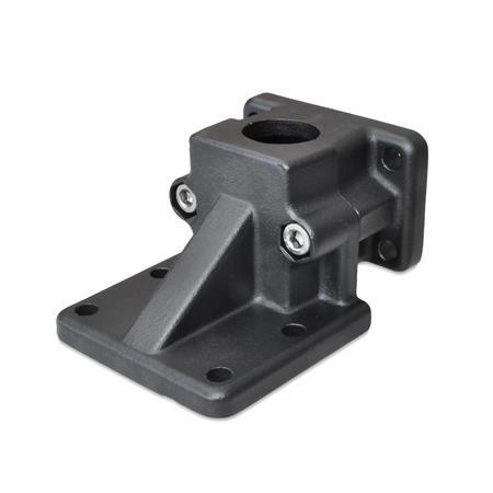 The clamping bores of the flanged base plate connector clamps, GN 171, are not machined and are designed for construction tubings GN990 or DIN2391, DIN2395 and DIN2462.