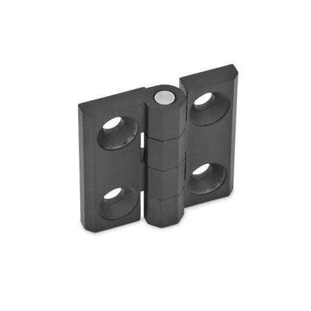 GN 237 hinges are characterized by their compact and stable design. The various material and surface choices in combination with two mounting types enable very specific applications.