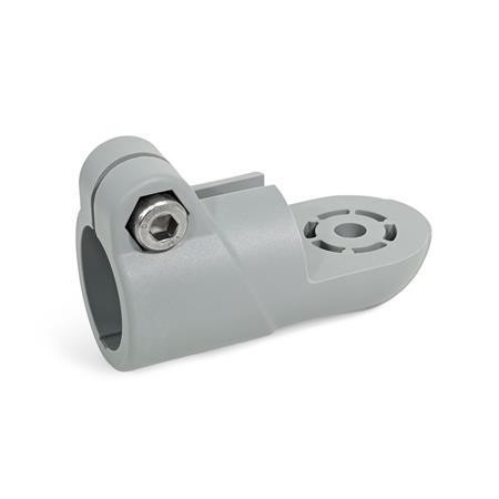 The fixing lug of swivel clamp connectors GN 276.9 is available with a smooth surface or with external or internal serration. The clamping bore holds typical construction tubes with full surface contact over the entire cross-section.