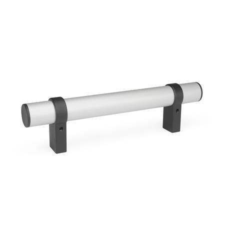 - Handle ELG - Tube, anodized, natural colour. Handle legs, plastic coated, silver, RAL 9006, textured finish. Cover, plastic, light grey, matt.