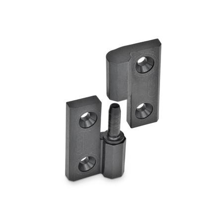 This detachable or split hinge, GN 337, is made from strong, reinforced plastic & is easy to fit. Fixed bearing pin can be left or right.
