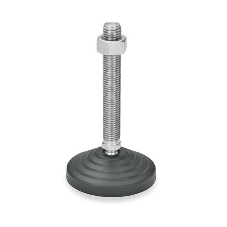 GN344.5 Levelling Foot, Stainless Steel Threaded Stud, Plastic Foot