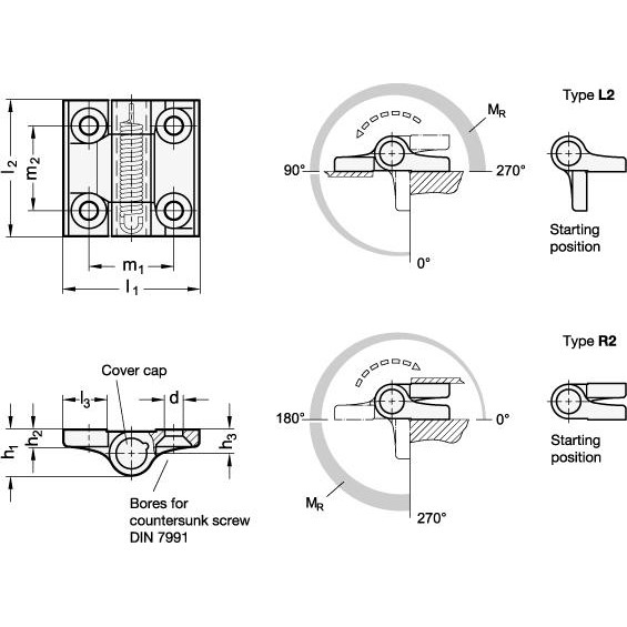The return torque varies with the hinge opening angle. Endurance tests have shown that the torque does not change even after 100,000 opening / closing cycles.