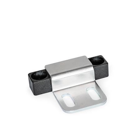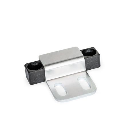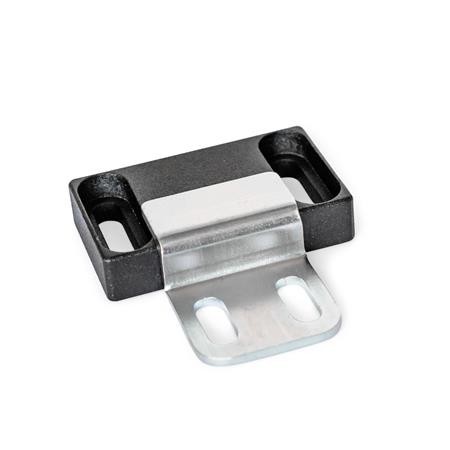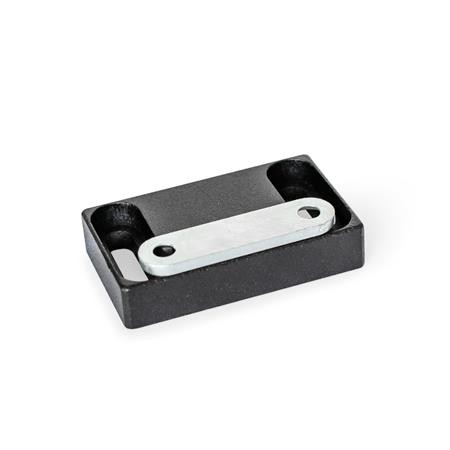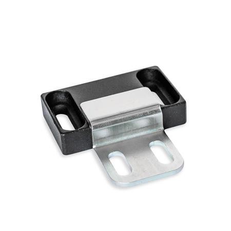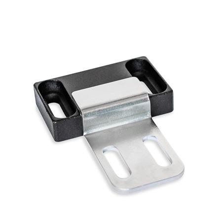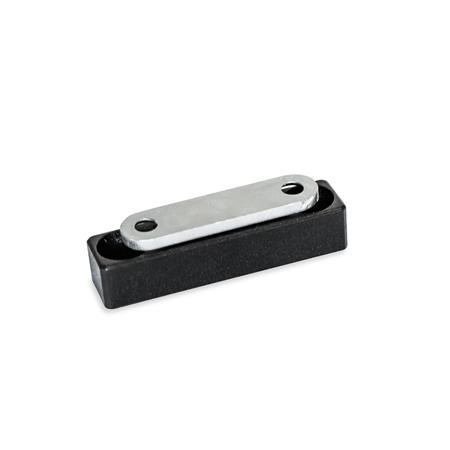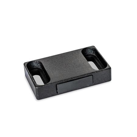 Magnetic catches GN 4470 are compact parts that hold covers, doors and sliding doors closed. The rubberised magnetic surface reduces noise and prevents damage to the opposite part.