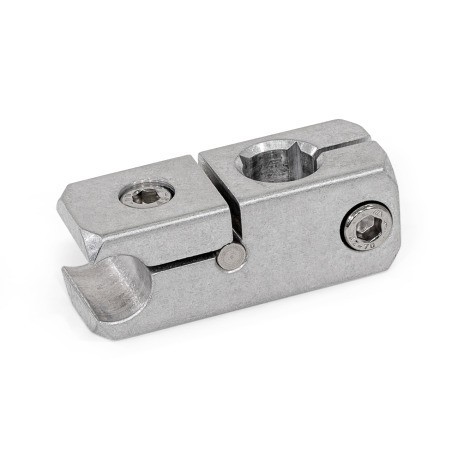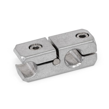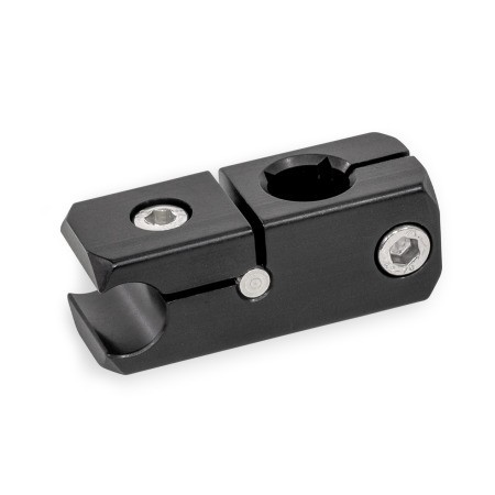 Rail mounting clamps GN 474.2 connect tubes and rods in parallel or at right angles. They are used for applications such as side guides, where the mounting clamps must not protrude to the side.