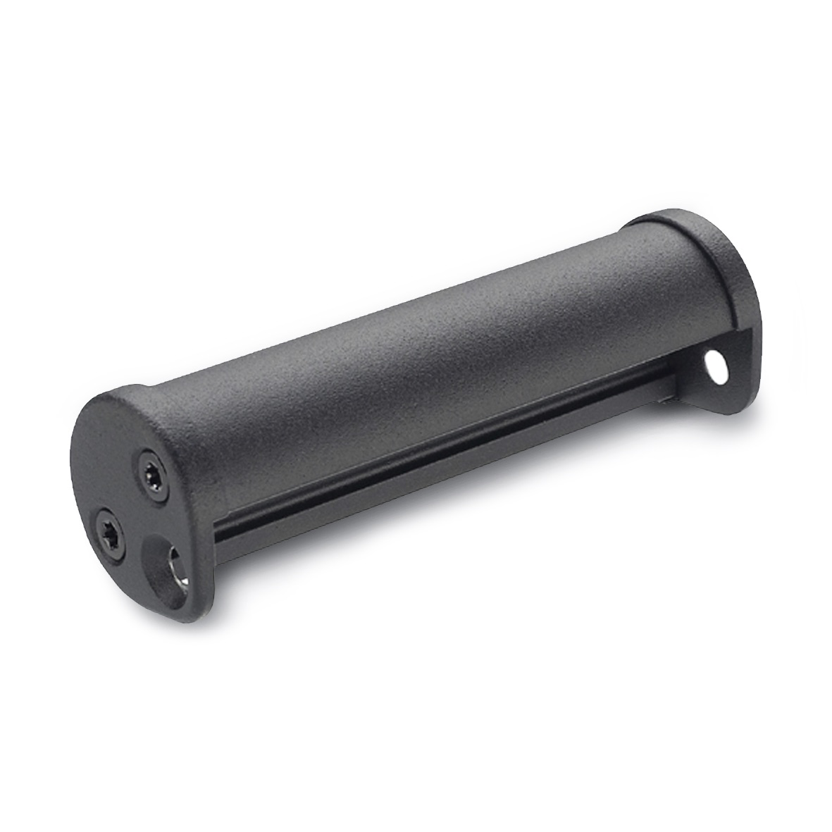 A tolerance compensation of 1 mm per end cap simplifies installation. The two end caps are mounted to the handle profile with self-tapping countersunk screws so they can be screwed back on after adjusting the length of the handle without requiring readjustment. This allows the length of the housing to be adapted to any desired size.