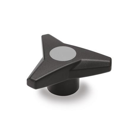 The ergonomic shape of these three-lobed knobs with threaded stud, GN 533, supports effective gripping, resulting in a high torque. The shape also helps prevent slipping. Strong, reinforced plastic.