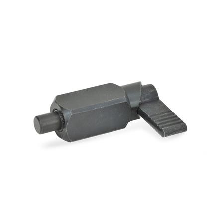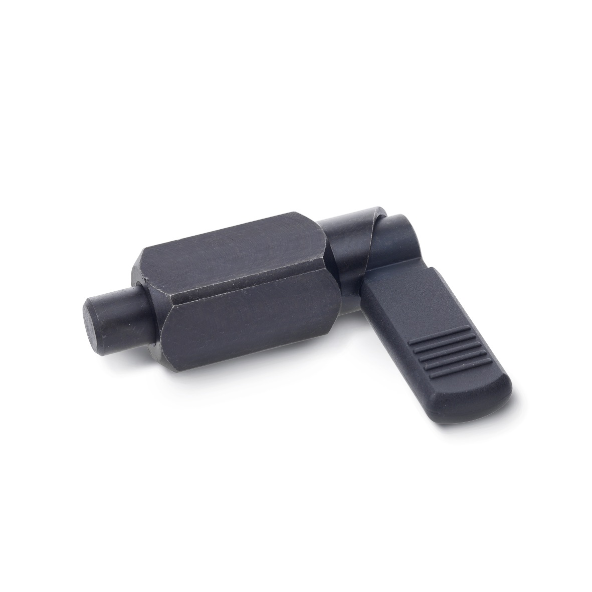 Cam action indexing plungers GN 612.3 are used in cases where the locking pin must not protrude all the time. By rotating the lock through 180° the locking pin withdraws itself.