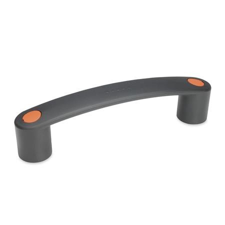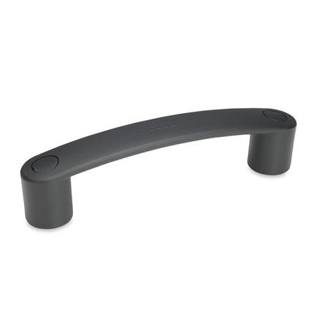 - Plastic, Technopolymer (Polyamide PA), glass fibre reinforced, temperature resistant up to 130°C, black-grey, matt, similar RAL 7021