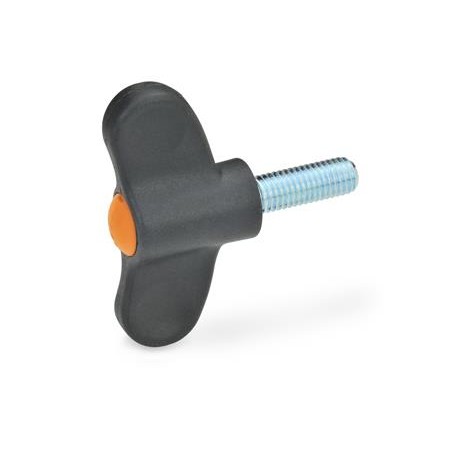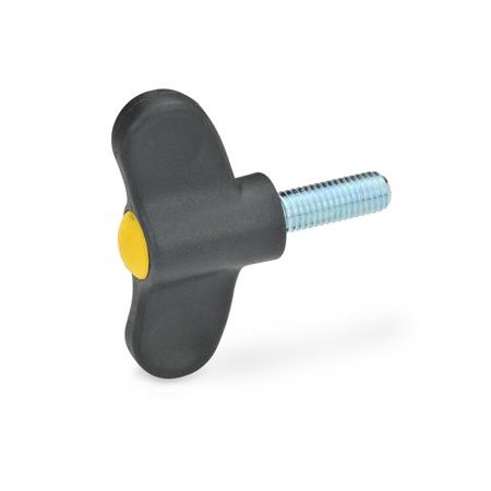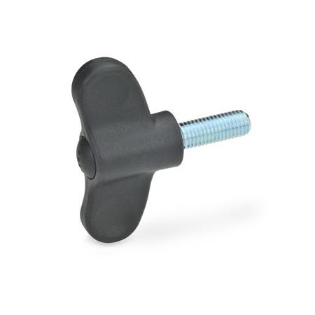 GN633 Wing Screw, Plastic, Threaded Steel Stud, Zinc Plated