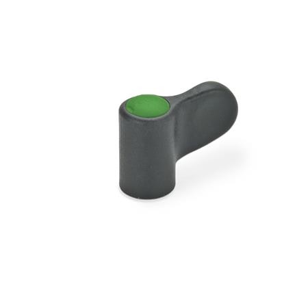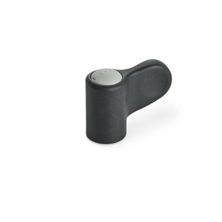 - Plastic - Technopolymer (Polyamide PA), Glass fiber reinforced, Temperature resistant up to 130 °C, Black-grey, matt, similar RAL 7021