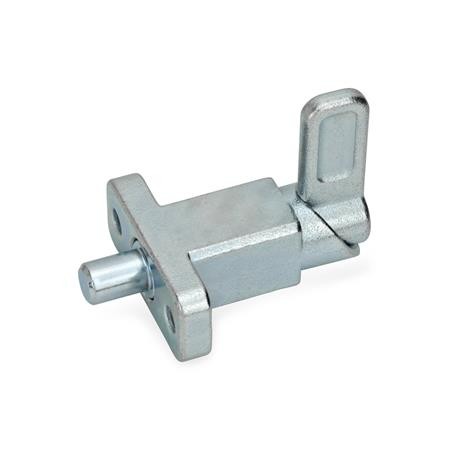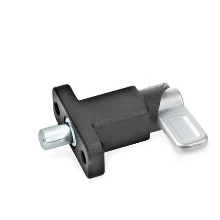 Spring latches GN 722.2 are used when the indexing pin is temporarily required to be retracted. The indexing pin retracts by turning the latch by 180° and a lock notch will hold the latch in both positions.
