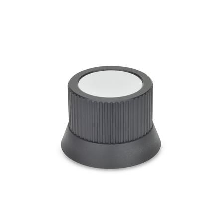 These GN 726.2 control knobs are an accurate means of making fine, precise position adjustments. The light grey cover of these control knobs shrouds the fixing components as well as the shaft end. The cover also lends itself to a logo or other symbols.