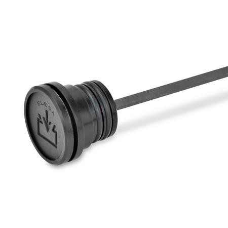 Plastic PA, glass fibre reinforced, black, matt. Temperature resistant up to 100° C.
