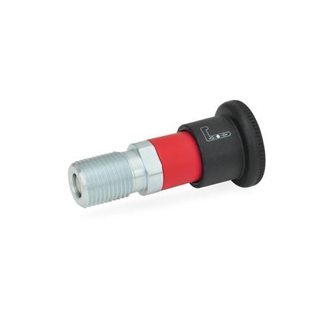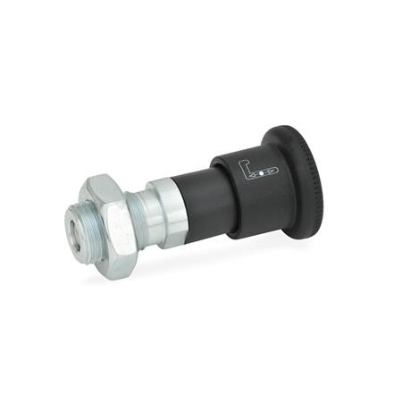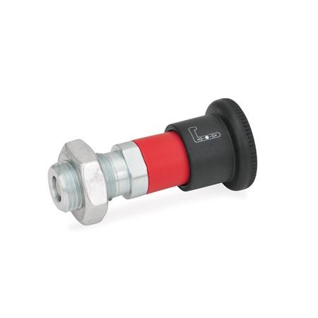 If not operated, the plunger of the locking plungers GN 816.1 is retracted. To move out, move against the spring force and hold in the end position by turning by 90°.