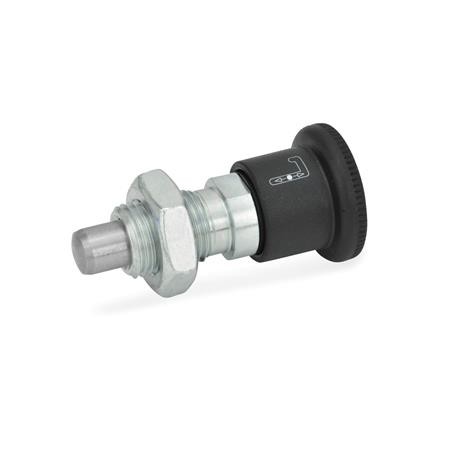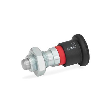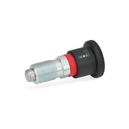 If not operated, the plunger of the locking plungers GN 816 protrudes. To retract, move against the spring force and hold in the end position by turning by 90°.