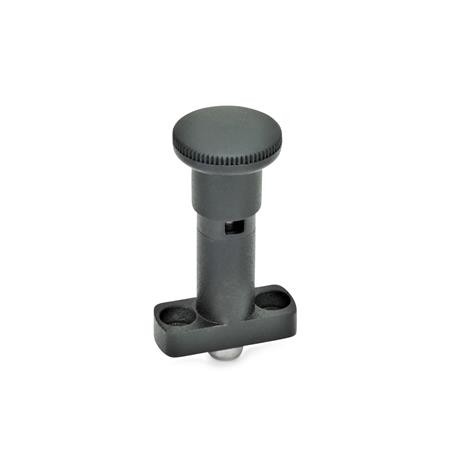 Indexing plungers GN 817.1 (Type C) are used for such applications where the plunger has to stay in its retracted position. To achieve this, the knob is rotated by 90° after being retracted. A notch keeps the plunger in this position.