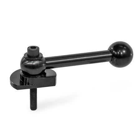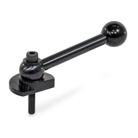 The ball levers of types KVS/GVS form a positive connection with the eccentric cam by means of a serration. During assembly, the lever can thus be fixed in a position favorable for clamping or, in the relaxed position, rotated out of the clamping range.