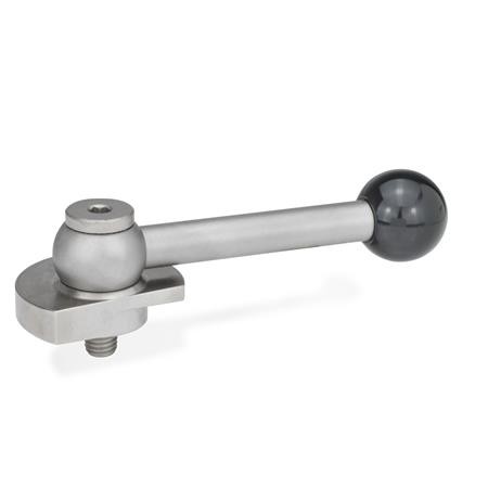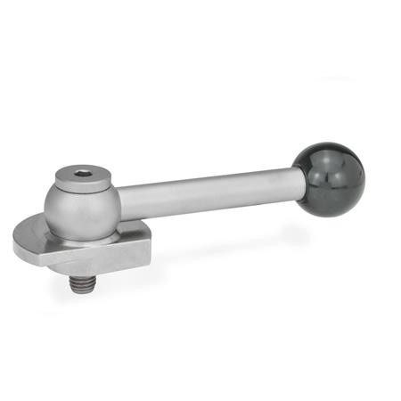 The ball levers of types KV and GV form a positive connection with the eccentric cam by means of a serration. During assembly, the lever can thus be fixed in a position favourable for clamping or, in the relaxed position, rotated out of the clamping range.