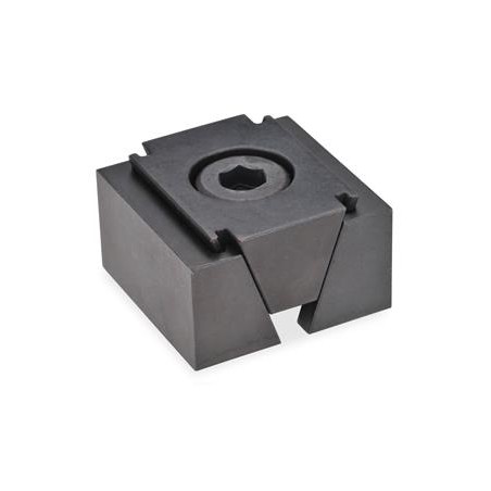 Clamping with GN 920.1 wedge clamps is achieved via the socket head cap screw and the clamp wedge, which function by moving both jaws outward.