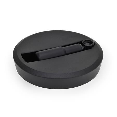 These GN 923.7 solid disc handwheels with retractable safety handles have a modern and attractive design. These handwheels are suitable for applications where the handle must not remain in the operating position. In order to bring the handle into the operating position it must be turned 90° to a stop against a torsion spring and then pushed against the spring pressure into its hold position. The handwheel can easily be rotated by maintaining the forward thrust on the handle. When the handle is released, the spring returns it back to the retracted position. The removable plastic cover shrouds the fixing components such as screws, countersunk washers as well as the shaft end.