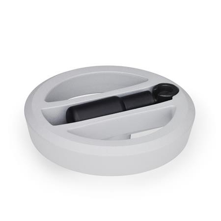 These GN 924.3 spoked disc handwheels with locking handles have a modern, attractive design. The handle in these handwheels is locked in a conical bore in the operating position. It must first be pulled from the cone in an axial direction for reversal. This prevents accidental movement of the handle. A pressure spring holds the handle in both positions. When swung out, it automatically engages again.