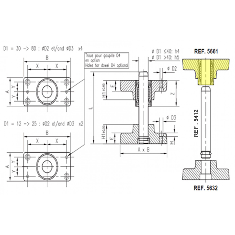 Type APD - Block drilled, with dowel hole ØD4 (on request)