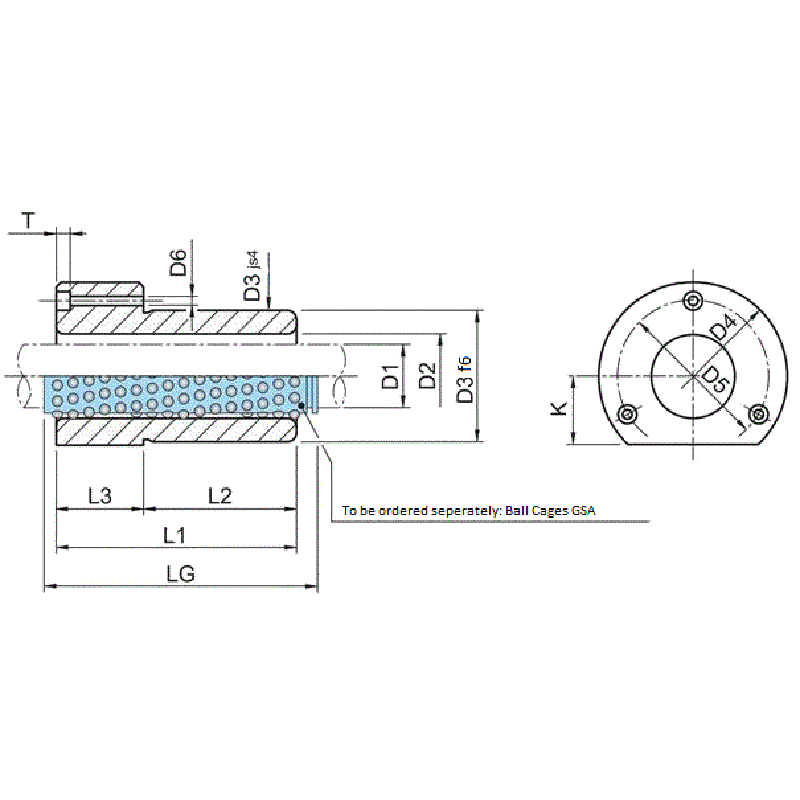 B5AG Flanged Guide Bush For Ball Cage, ISO